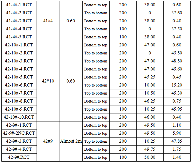 Pile No.:42#10,42#9,41#1,41#4,24#1,24#4,Specific data are shown below: