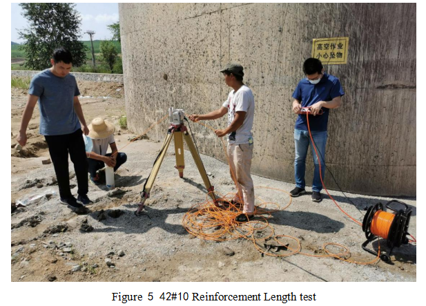RSM-RLT Reinforcement Length tester is used for relevant tests, each pile is tested by two lifting methods, i.e. from bottom to top and from top to bottom. Each test method is tested for many times, and the displacement of measuring points is mainly 10cm and 20cm.